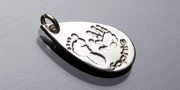 These stunning pendants are designed with an imprint of your child's hand or footprint, made from 99.9% recycled silver to your design approval.